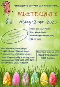 - Muziekquiz, rommelmarkt en paasontbijt: verplicht reserveren via kermiscomite_evergem@outlook.com