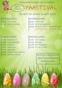 Paastival is meer dan een evenement – het is een traditie die ons als gemeenschap dichter bij elkaar brengt. Of je nu komt voor de muziek, de kinderanimatie, de gezellige sfeer of gewoon om oude bekenden tegen te komen: er is voor iedereen iets te beleven.